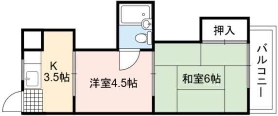 | 間取り詳細 | 洋室 4.5畳 、 和室 6畳 、 K 3.5畳 |