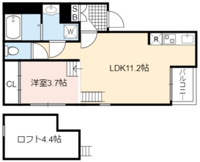 | 間取り詳細 | LDK 11.2畳 、 洋室 3.7畳 |