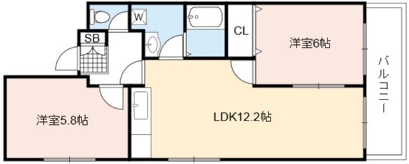 | 間取り詳細 | LDK 12.2畳 、 洋室 6畳 、 洋室 5.8畳 |