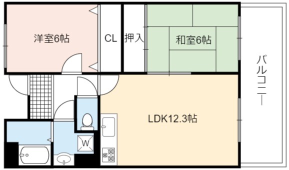 | 間取り詳細 | LDK 12.3畳 、 和室 6畳 、 洋室 5.2畳 |