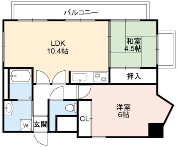 | 間取り詳細 | LDK 10.4畳 、 洋室 6畳 、 和室 4.5畳 |