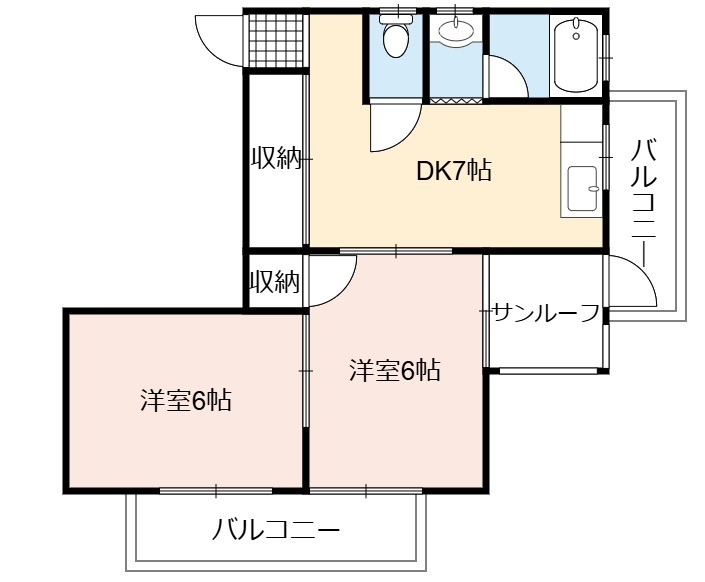 | 間取り詳細 | DK 7畳 、 洋室 6畳 、 洋室 6畳 |