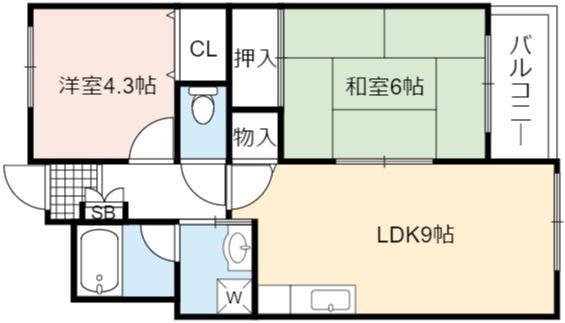 | 間取り詳細 | LDK 9畳 、 洋室 6畳 、 洋室 4.3畳 |