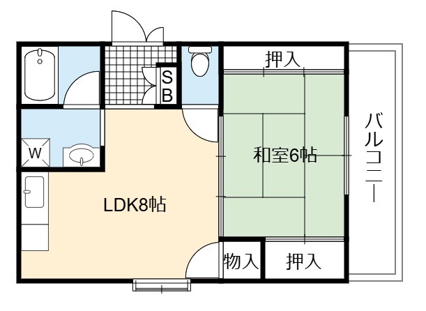 | 間取り詳細 | LDK 8畳 、 和室 6畳 |