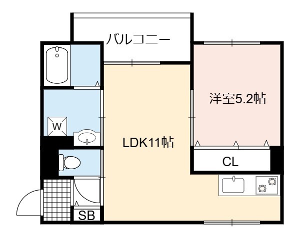 | 間取り詳細 | LDK 11畳 、 洋室 5.2畳 |