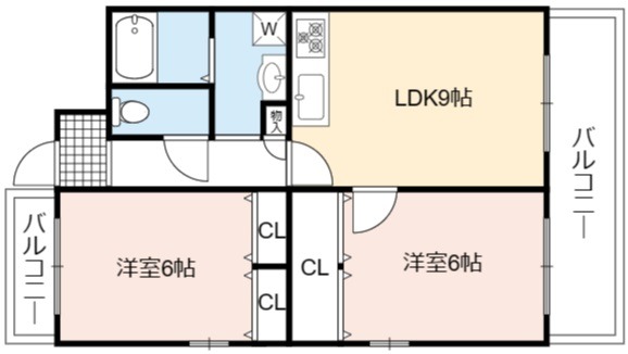 | 間取り詳細 | LDK 9畳 、 洋室 6畳 、 洋室 6畳 |