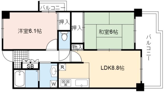 | 間取り詳細 | DK 8.8畳 、 洋室 6.1畳 、 和室 6畳 |