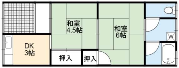 | 間取り詳細 | DK 3畳 、 和室 6畳 、 和室 4.5畳 |
