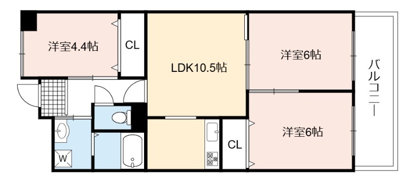 | 間取り詳細 | LDK 10.5畳 、 洋室 6畳 、 洋室 6畳 、 洋室 4.4畳 |
