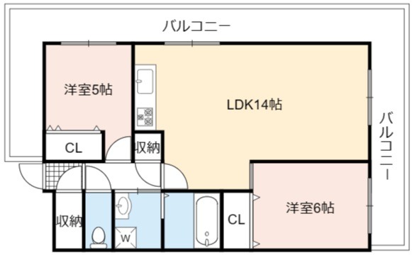 | 間取り詳細 | LDK 14畳 、 洋室 6畳 、 洋室 5畳 |
