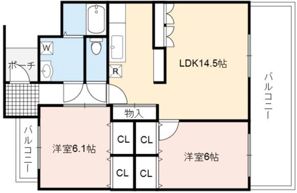 | 間取り詳細 | LDK 14.5畳 、 洋室 6.1畳 、 洋室 6畳 |