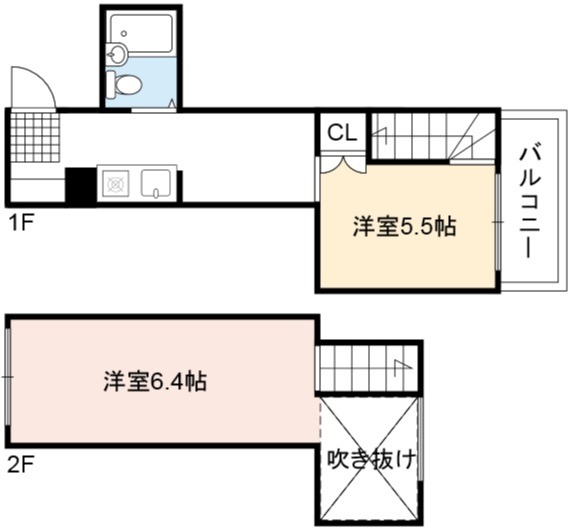 | 間取り詳細 | DK 5.5畳 、 洋室 6.4畳 |