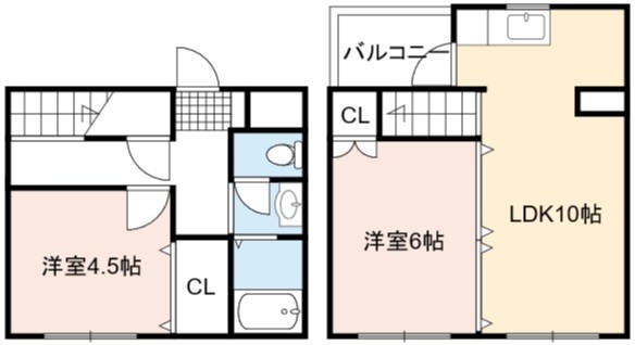 | 間取り詳細 | LDK 10畳 、 洋室 6畳 、 洋室 4.5畳 |