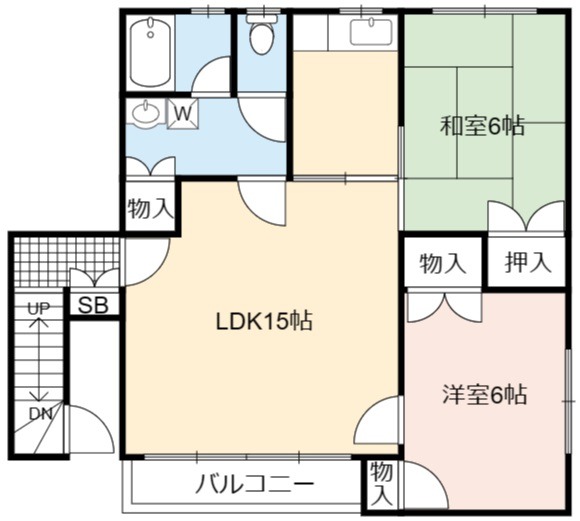 | 間取り詳細 | LDK 15畳 、 洋室 6畳 、 和室 6畳 |