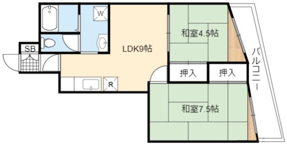 | 間取り詳細 | LDK 9畳 、 洋室 7.5畳 、 和室 4.5畳 |