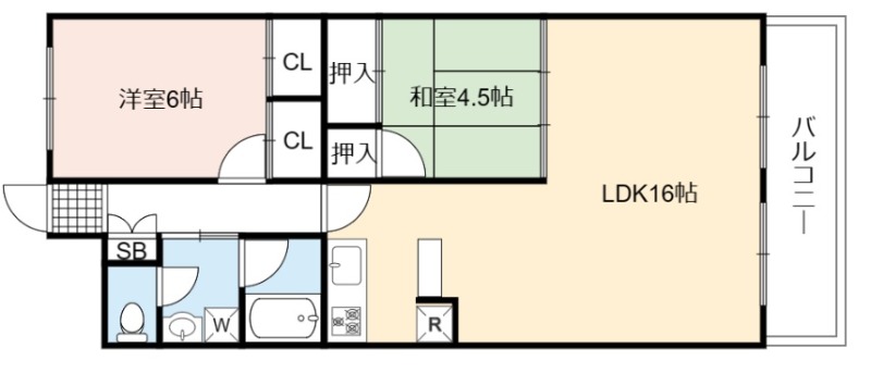 | 間取り詳細 | LDK 16畳 、 洋室 6畳 、 和室 4.5畳 |