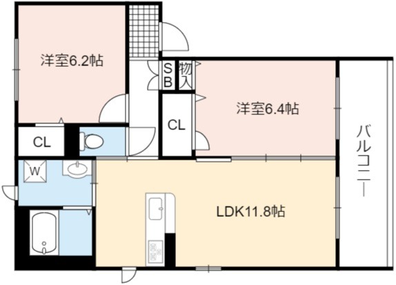 | 間取り詳細 | LDK 11.8畳 、 洋室 6.4畳 、 洋室 6.2畳 |