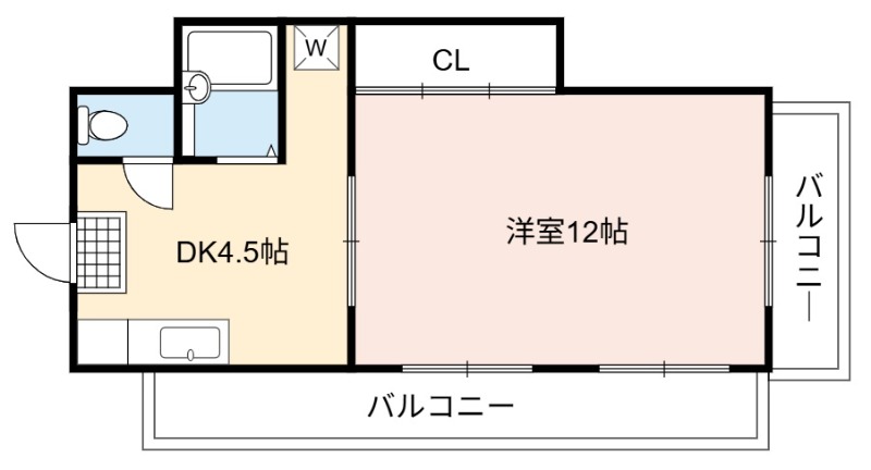| 間取り詳細 | DK 4.5畳 、 洋室 12畳 |