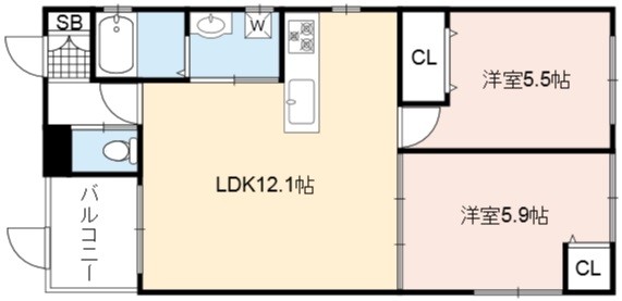 | 間取り詳細 | LDK 12.1畳 、 洋室 5.9畳 、 洋室 5.5畳 |