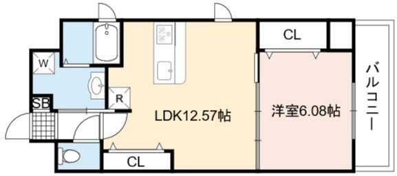 | 間取り詳細 | LDK 12.57畳 、 洋室 6.08畳 |
