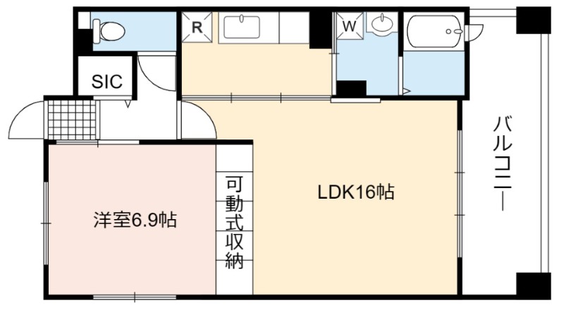 | 間取り詳細 | LDK 16畳 、 洋室 6.9畳 |