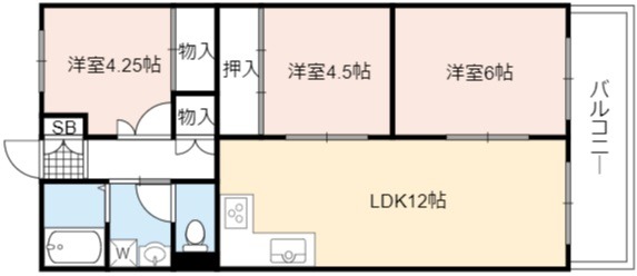 | 間取り詳細 | LDK 12畳 、 洋室 6畳 、 洋室 4.5畳 、 洋室 4.5畳 |