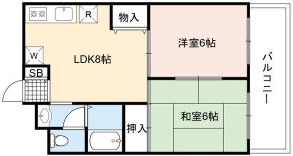 | 間取り詳細 | LDK 8畳 、 洋室 6畳 、 和室 6畳 |