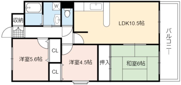 | 間取り詳細 | LDK 10.5畳 、 和室 6畳 、 洋室 5.6畳 、 洋室 4.5畳 |