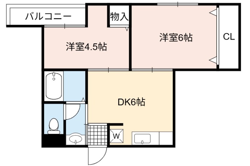 | 間取り詳細 | DK 6畳 、 洋室 6畳 、 洋室 4.5畳 |