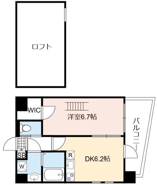 | 間取り詳細 | DK 6.2畳 、 洋室 6.7畳 |