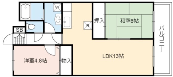 | 間取り詳細 | LDK 13畳 、 和室 6畳 、 洋室 4.8畳 |