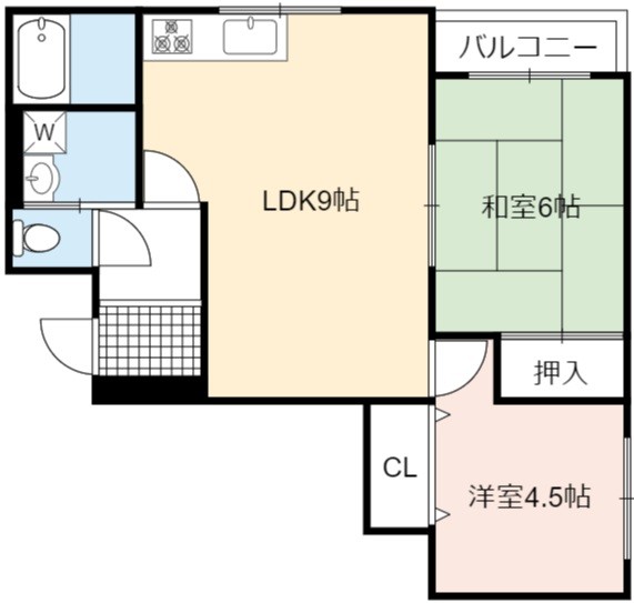 | 間取り詳細 | LDK 9畳 、 和室 6畳 、 洋室 4.5畳 |