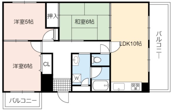 | 間取り詳細 | LDK 10畳 、 洋室 6畳 、 和室 6畳 、 洋室 5畳 |