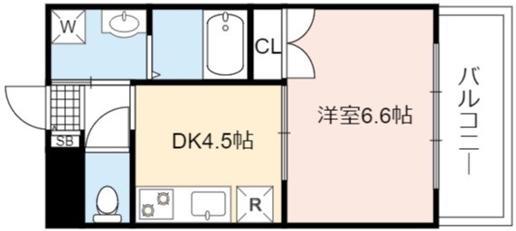 | 間取り詳細 | DK 4.5畳 、 洋室 6.6畳 |
