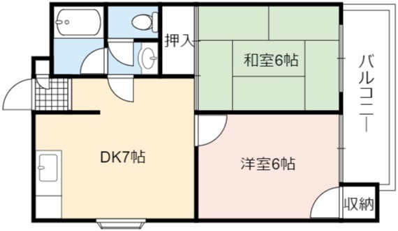 | 間取り詳細 | DK 7畳 、 和室 6畳 、 洋室 6畳 |