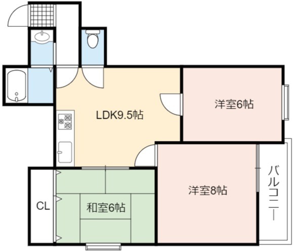 | 間取り詳細 | LDK 9.5畳 、 洋室 8畳 、 洋室 6畳 、 和室 6畳 |