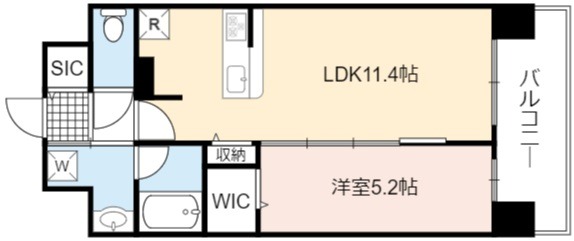 | 間取り詳細 | LDK 11.4畳 、 洋室 5.2畳 |