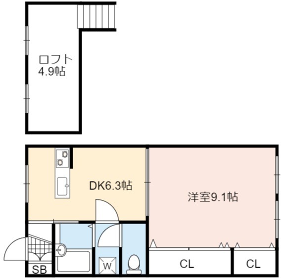 | 間取り詳細 | DK 6.3畳 、 洋室 9.1畳 |