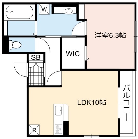 | 間取り詳細 | LDK 10畳 、 洋室 6.3畳 |