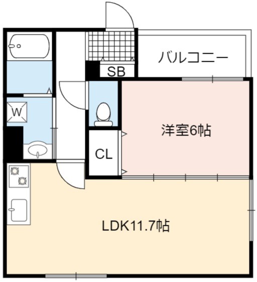 | 間取り詳細 | LDK 11.7畳 、 洋室 6.1畳 |