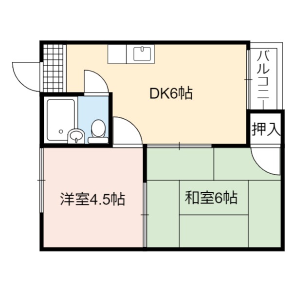 | 間取り詳細 | DK 6畳 、 洋室 6畳 、 和室 4.5畳 |