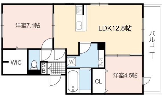 | 間取り詳細 | LDK 12.8畳 、 洋室 7畳 、 洋室 4.5畳 |