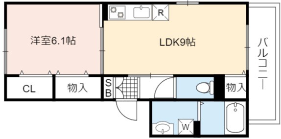 | 間取り詳細 | LDK 9畳 、 洋室 6.1畳 |