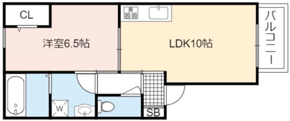 | 間取り詳細 | LDK 10畳 、 洋室 6.5畳 |