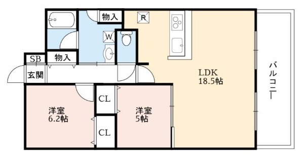 | 間取り詳細 | LDK 18.5畳 、 洋室 6.2畳 、 洋室 5畳 |