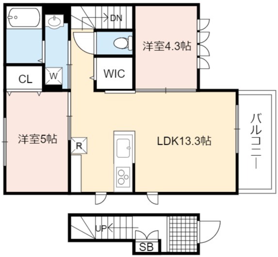 | 間取り詳細 | LDK 13.3畳 、 洋室 5畳 、 洋室 4.3畳 |