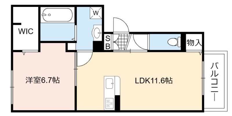 | 間取り詳細 | LDK 11.6畳 、 洋室 6.7畳 |