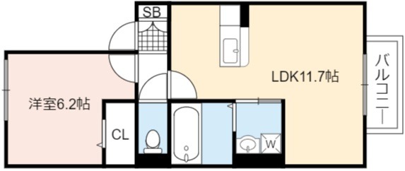 | 間取り詳細 | LDK 11.7畳 、 洋室 6.2畳 |