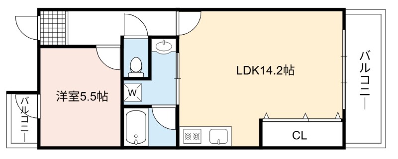 | 間取り詳細 | LDK 14.2畳 、 洋室 5.5畳 |