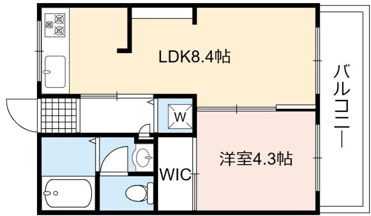 | 間取り詳細 | LDK 8.4畳 、 洋室 4.3畳 |